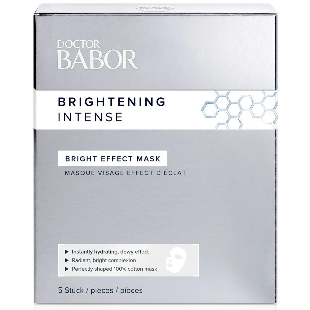 Die BABOR Doctor Babor Bright Effect Mask ist eine perfekt geformte Tuchmaske aus 100% Baumwolle mit Power-Brightening Wirkstoffen. Sie verleiht der Haut bereits nach 15 Minuten einen hell strahlenden Teint. Der EXP Bright-Komplex verleiht der Haut ein natürliches Strahlen. Die Baumwollmaske schmiegt sich perfekt der Haut an und sorgt für eine optimale Wirkstoffaufnahme. Der Feuchtigkeitslevel der Haut wird verbessert.