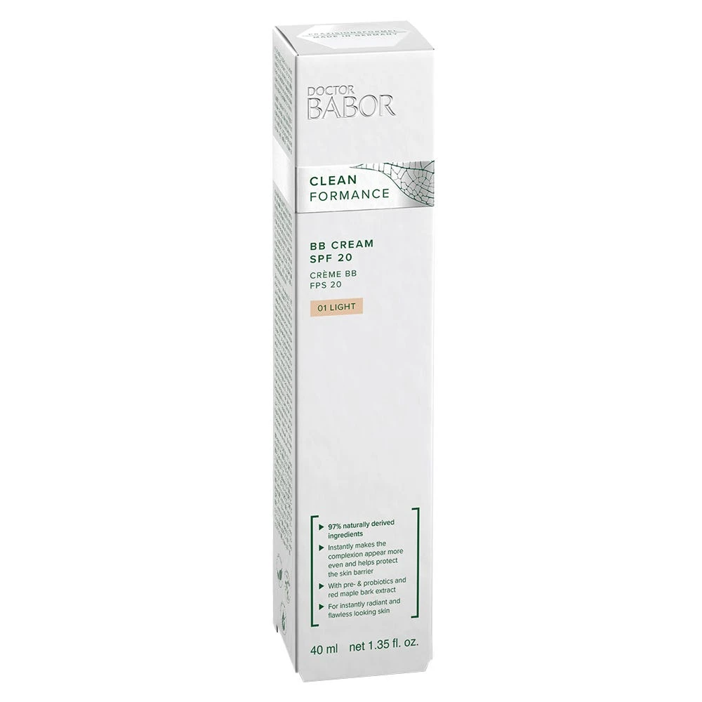 Die BABOR Doctor Babor Cleanformance BB Cream SPF 20 ist eine zart getönte Gesichtscreme für die tägliche Pflege. Die zarte Tönung mit mittlerer Deckkraft kaschiert optisch Unebenheiten und lässt die Haut neu erstrahlen. Der Teint zeigt sich rosig frisch.