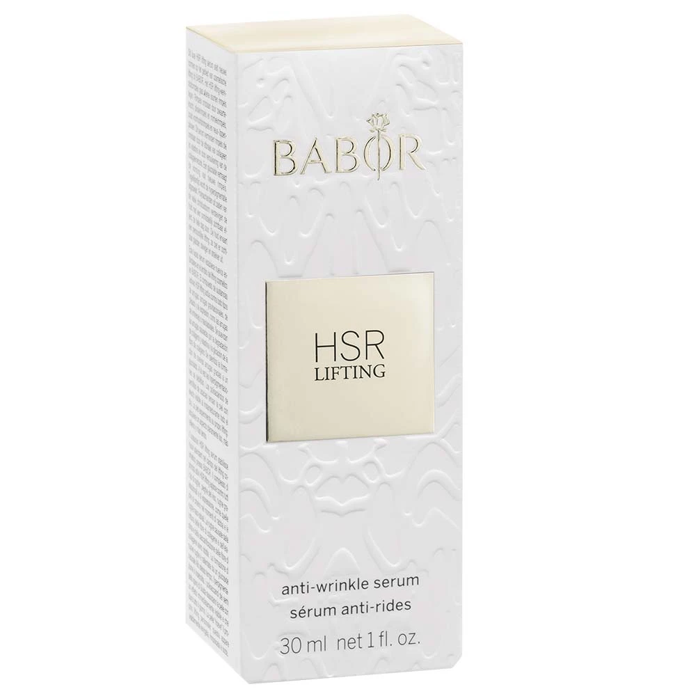 Das BABOR HSR Lifting Serum glättet die Haut und sorgt für ein strahlendes Hautbild mit sichtbar weniger Falten. Dieses luxuriöses lifting Serum setzt neue Maßstäbe im Bereich des kosmetischen Liftings bei BABOR. Der HSR lifting Wirkstoffkomplex wirkt gegen alle Faltenarten: Gravitations-, Plisseeund Mimikfalten, zum Beispiel Zornesund Nasolabialfalte. Durch Kollagen- und Elastinabbau sowie durch Verzuckerung der Kollagenfasern entstandene Falten werden gemildert. Die Entstehung neuer Falten wird durch ein natürliches Glucosid verlangsamt. Gleichzeitig werden Hyperpigmentierungen abgeschwächt. Polysaccharide aus dem Honigdorn Samen straffen die Haut mit sofort sichtbarem Effekt, den ganzen Tag lang. Die Haut erfährt ihr persönliches Lifting: sie zeigt sich sichtbar geglättet, praller und straffer.