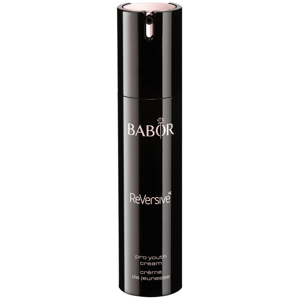 Schenken Sie Ihrer Haut mit dieser hochwirksamen BABOR ReVersive Pro Youth Cream jugendliche Strahlkraft. Die BABOR Laboratorien haben den Pro Youth Complex gegen die häufigsten Zeichen der Hautalterung – wie Elastizitätsverlust, Faltenbildung und fehlende Ausstrahlung – entwickelt. Dank ReVersive wirkt die Haut sichtbar straffer, fester und glatter. Sie zeigt sich intensiv durchfeuchtet und geschmeidiger. Das Hautbild erscheint verfeinert, ebenmäßiger und strahlender. Für einen perfektionierten, jugendlichen Teint.