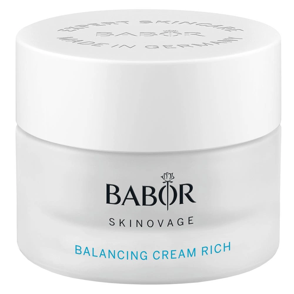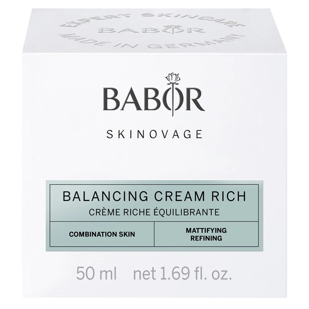 Die BABOR SKINOVAGE Balancing Cream rich ist eine geschmeidige, reichhaltige Gesichtspflegecreme, die speziell für die Mischhaut entwickelt wurde. Der pflanzliche Wirkstoff mit Samen des Annattostrauchs trägt dazu bei den Sebumgehalt der Haut wieder in Balance zu bringen. Zusätzlich wird der Glanz auf der Haut verringert, Poren erscheinen bei regelmäßiger Anwendung verfeinert und Unregelmäßigkeiten minimiert. Natürliche Biopolymere helfen den Feuchtigkeitsgehalt der Haut zu regulieren und bilden ein Feuchtigkeitsdepot. Die Haut zeigt sich frischer, ausgeglichener und matter.