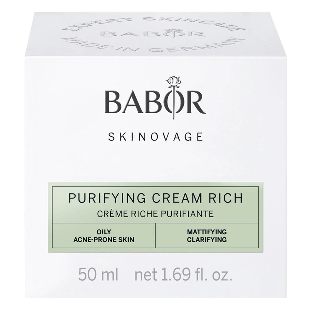 Die BABOR SKINOVAGE Purifying Cream rich ist eine Gesichtspflegecreme, die speziell für die ölige und zu Unreinheiten neigende Haut konzipiert wurde. Natürliche Bioflavonoide helfen vorhandene Hautunreinheiten zu reduzieren, können der Entstehung von Mitessern und Akne Vulgaris vorbeugen und die Sebumproduktion ausgleichen. Sie unterstützen außerdem die Regulierung des Haut-Mikrobioms für eine optimale Mikoroflora und ein verfeinertes Hautbild. Gleichzeitig mattiert die enthaltene Reisstärke den Teint.